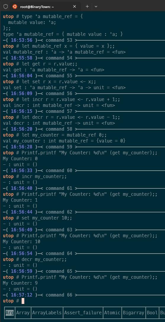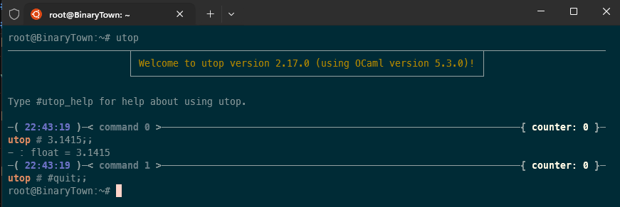 # Şu noktada ocaml universal TopLevel aracı olan utop'u kullanarak interaktif bir şekilde OCaml kodu yazabiliriz