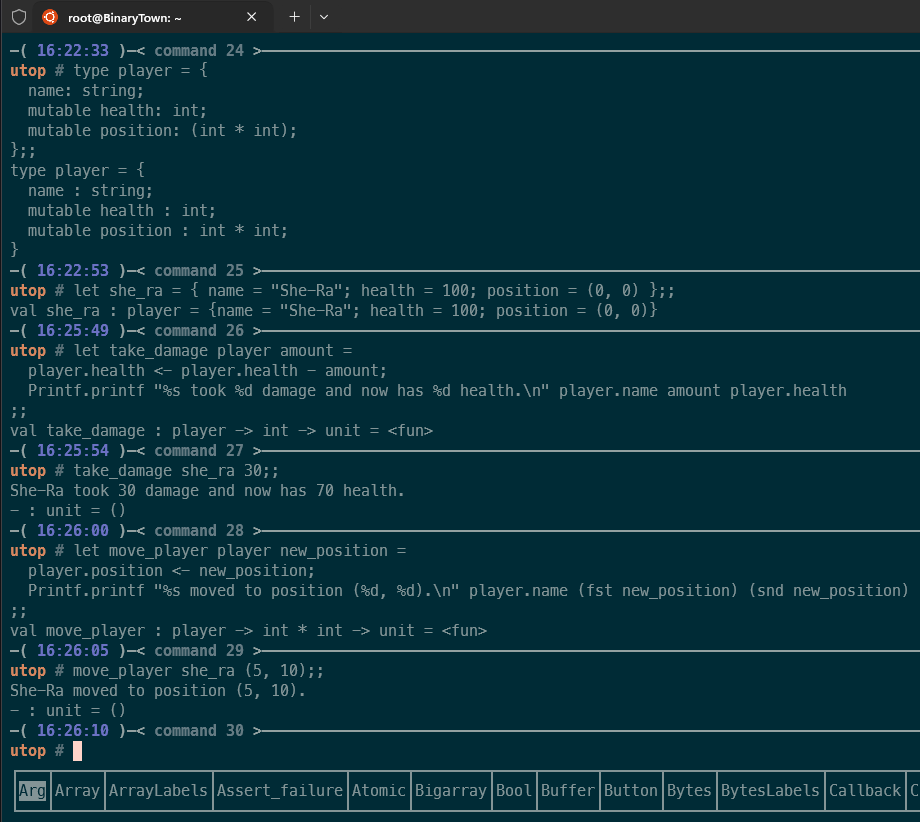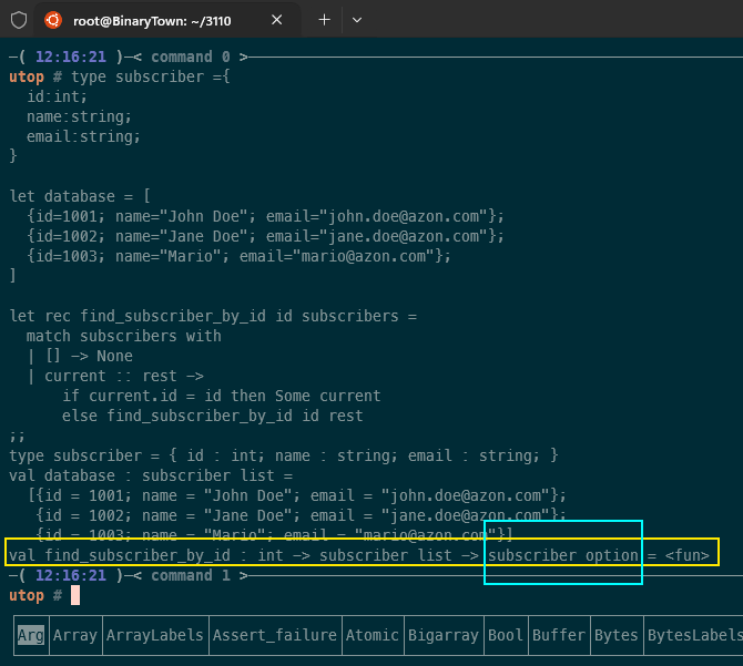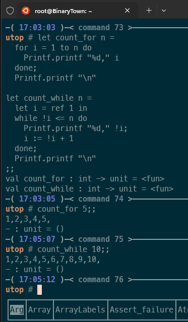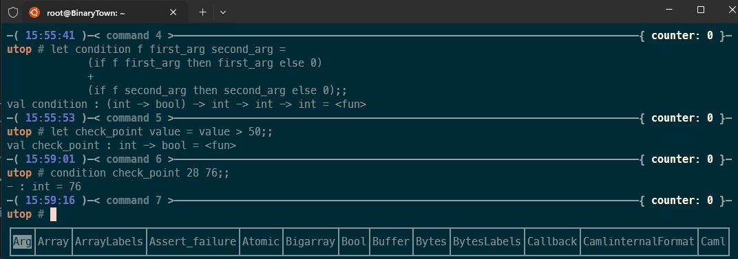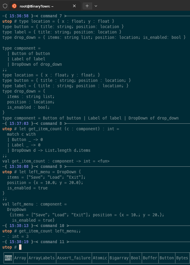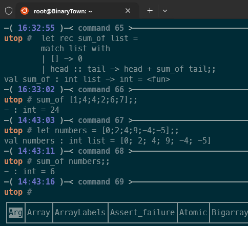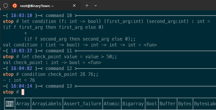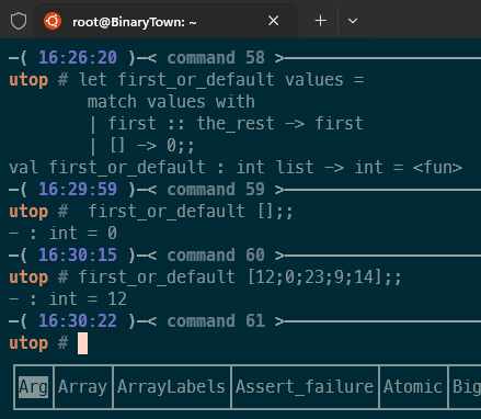 Eğer her şey yolunda giderse ubuntu ortamında utop ile doğrudan ocaml kodlamaya başlanabilir. Mesela,