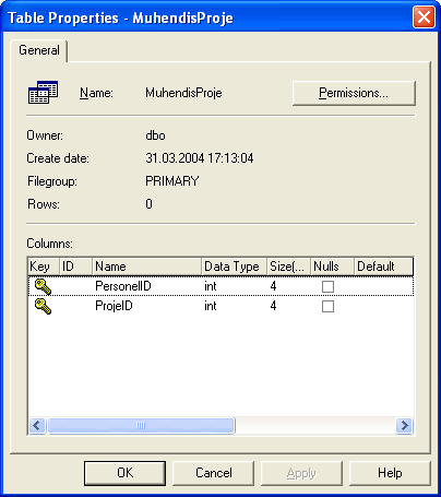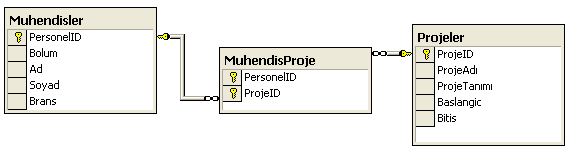 Şekil 4. MuhendisProje Tablomuz Çoka-çok ilişkiyi taşıyacak.