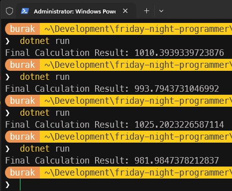 Üstelik .Net tarafındaki gibi iki thread ve her birisinde 100er iterasyon içeren döngülerde çalışırken... Buradaki farkın karekök ve logaritma işlemlerinden kaynaklanan küçük yuvarlama hatalarından mı yoksa Mutex kilitlenmesi sırasında ortaya çıkan performans etkilerinden mi kaynaklandığını bilmiyorum. Belki de her ikisi birden. Ancak sonuçların her seferinde aynı olmaması dikkat çekici. Bir nevi thread'lerin farklı sıralarda çalışmasından kaynaklı bir durum da söz konusu olabilir. Sadece üstünkörü bir bakış açısıyla Rust tarafındaki hesaplamaların daha yüksek rakamlara ulaştığını ifade edebiliriz.