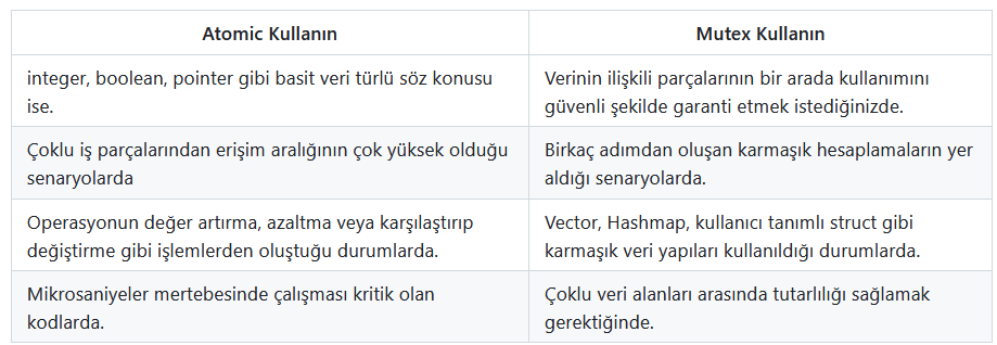 Eşzamanlı Garantilerde Mutex(Mutual Exclusion) Yerine Atomic Türleri Kullanmak